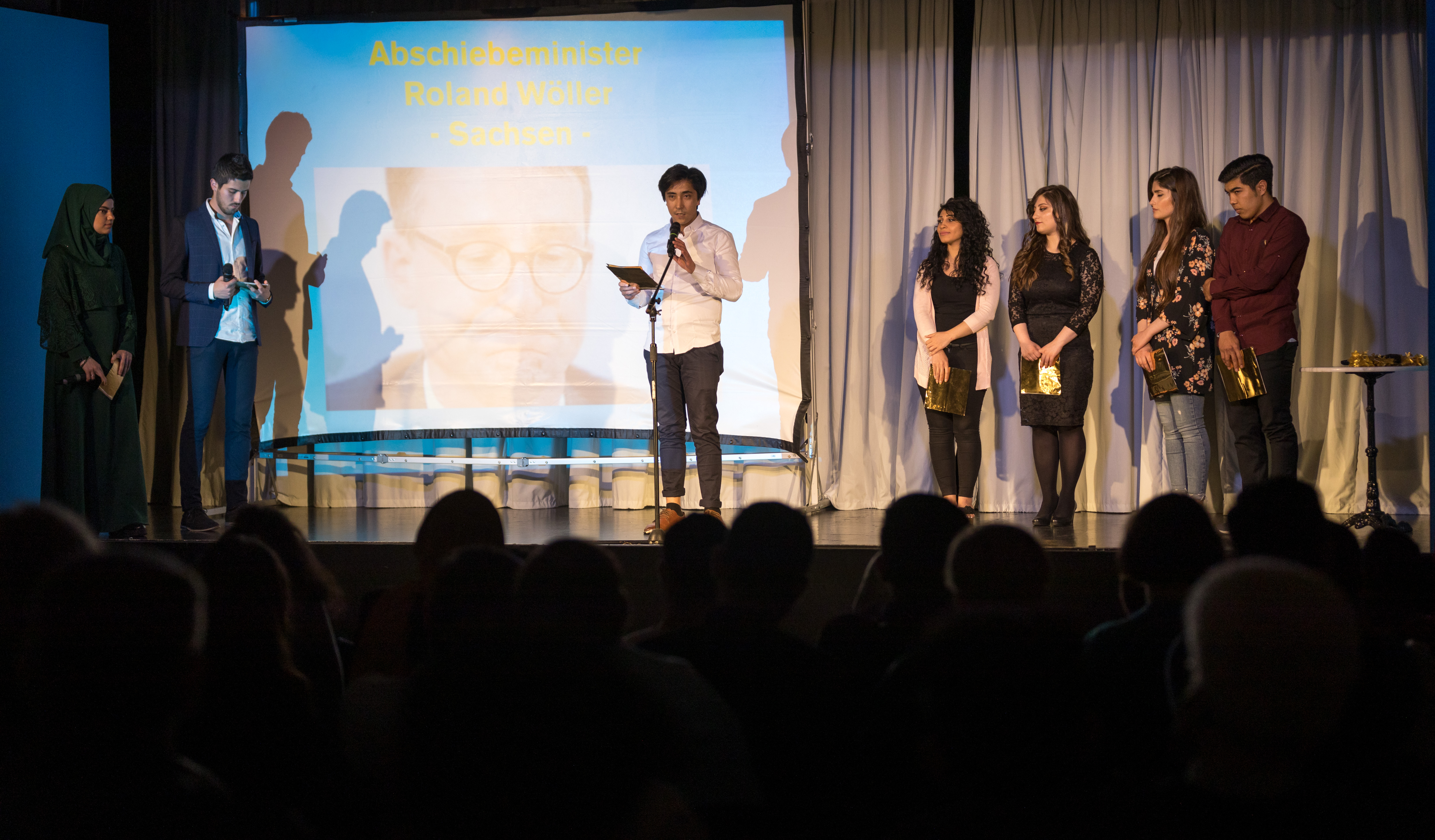 Stellvertretend geben Jugendliche ohne Grenzen die Bewerbungsreden für die zu wählenden Abschiebeminister 2019 ab
