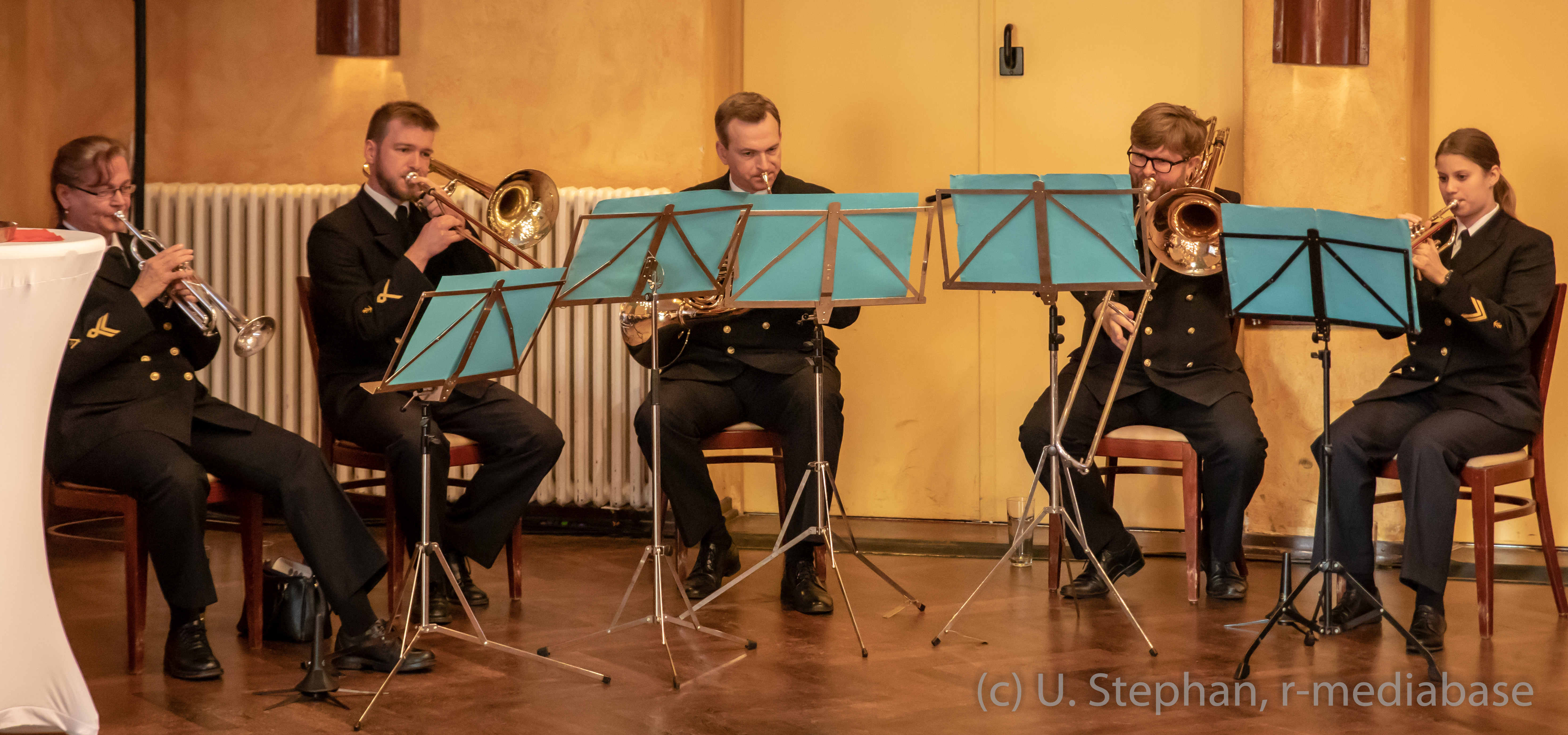 Offizieller Empfang der Stadt Kiel zum Matrosenaufstand im Legiensaal des Kieler Gewerkschaftshauses mit dem Blechbläserquintett des Marinemusikkorps Kiel