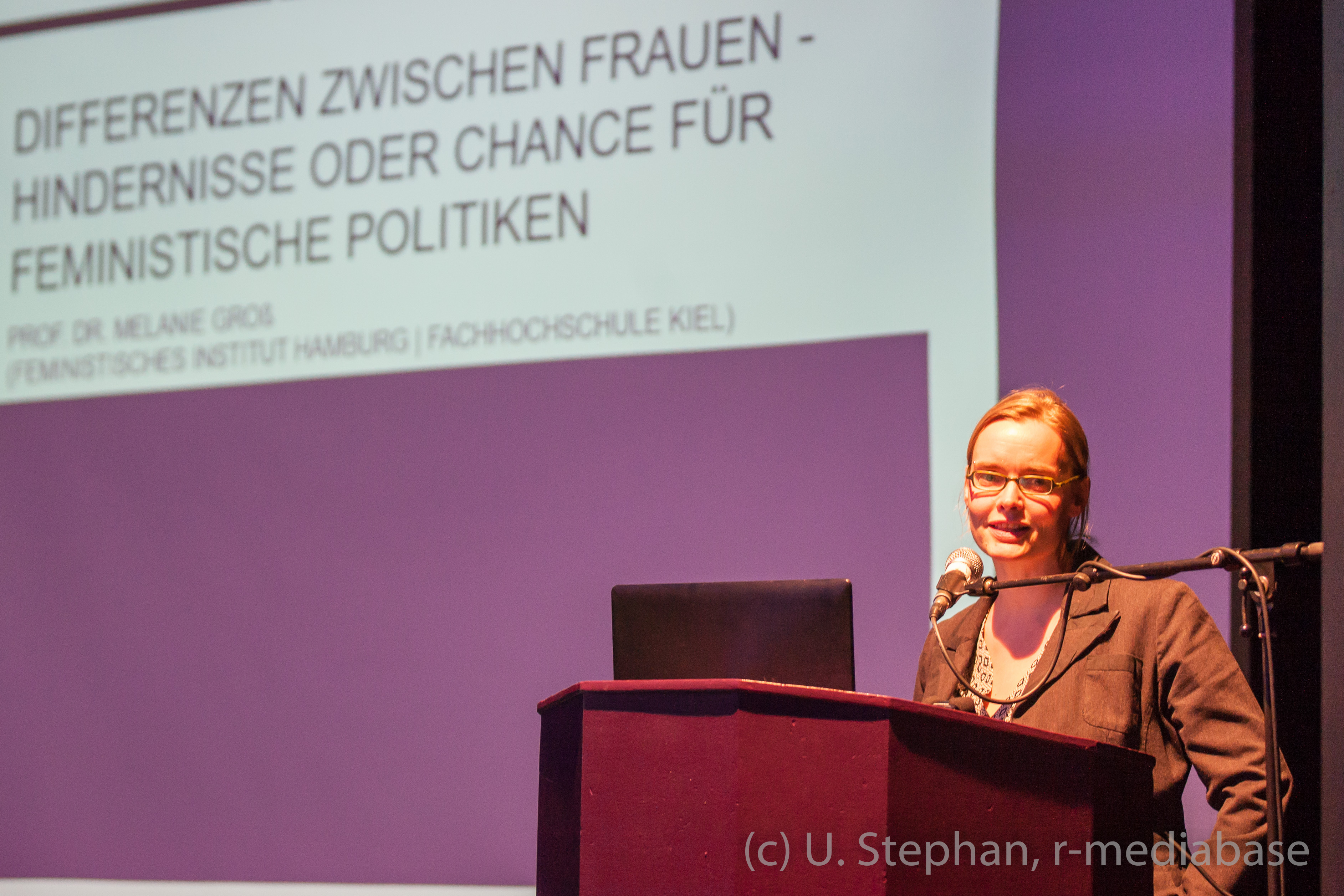 Abendveranstaltung zum Internationalen Frauentag 2016 der Frauenbündnis KielVortrag von Prof. Melanie Groß (FH Kiel) „Was heißt hier Frau*?!“: Alter, Herkunft, Bildung und vieles mehr prägen das Frausein mit. Die herrschenden Machtverhältnisse wirken sich auf verschiedene Frauen unterschiedlich aus. Was bedeutet das für Frauen allgemein? Welche Handlungsmöglichkeiten haben wir und welche Bündnisse könnten wir schmieden?