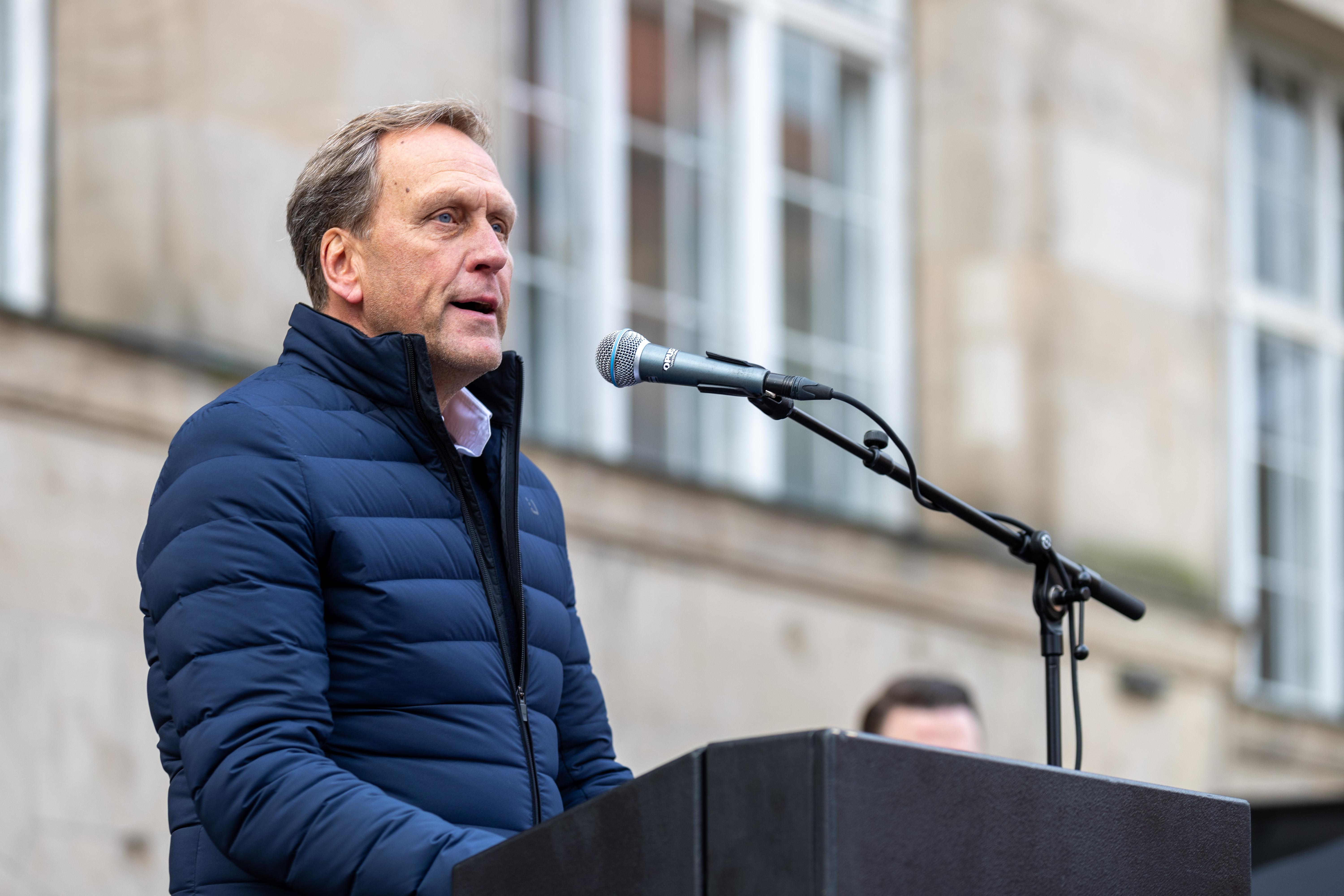 Kundgebung des DGB für Demokratie und Solidarität in Kiel auf den Rathausplatz, Steffen Schneekloth, Präsident von Holstein Kiel
