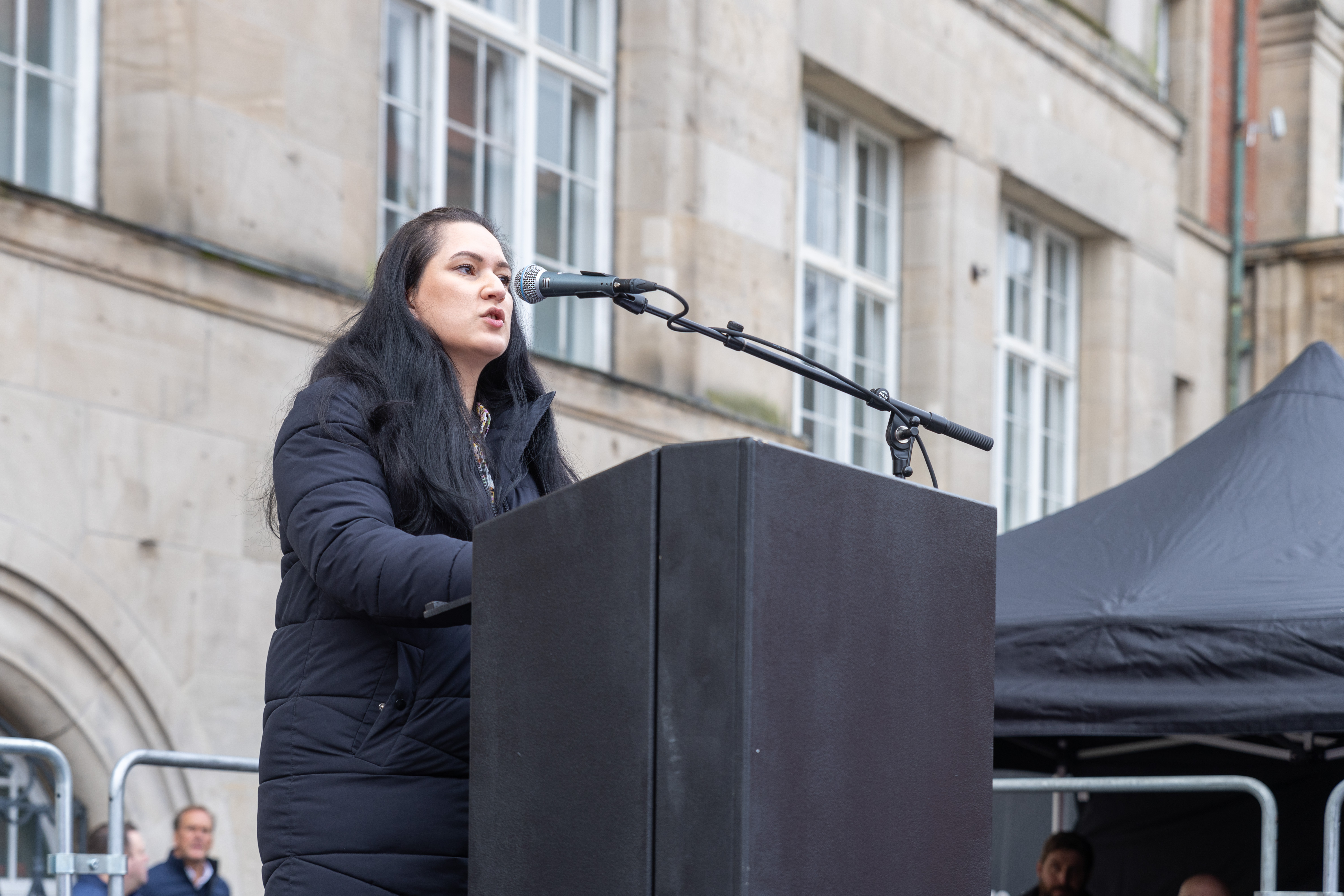 Kundgebung des DGB für Demokratie und Solidarität in Kiel auf den Rathausplatz, Dursiye Ayyıldız, Vorsitzende des Forums für Migratinnen und Migraten