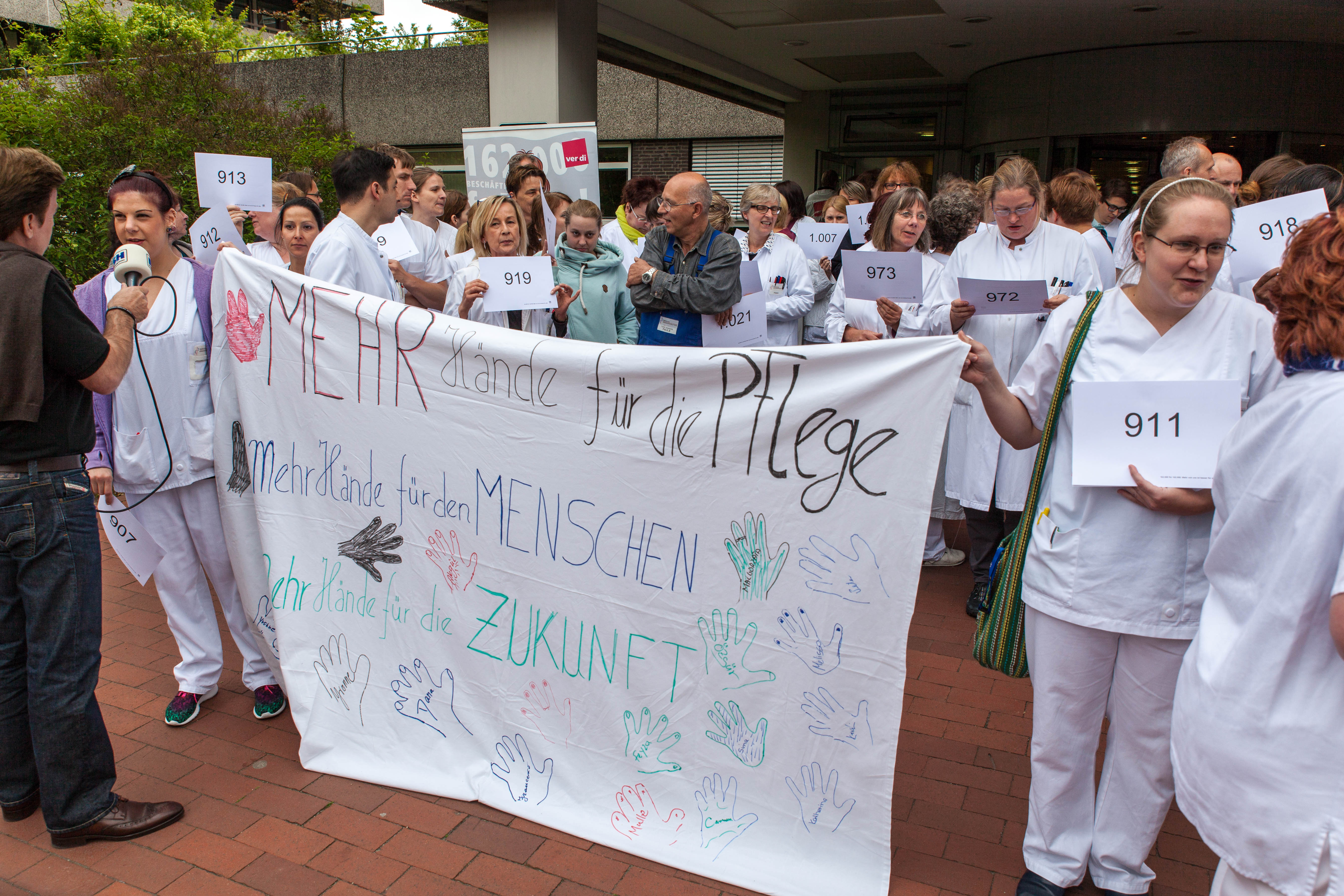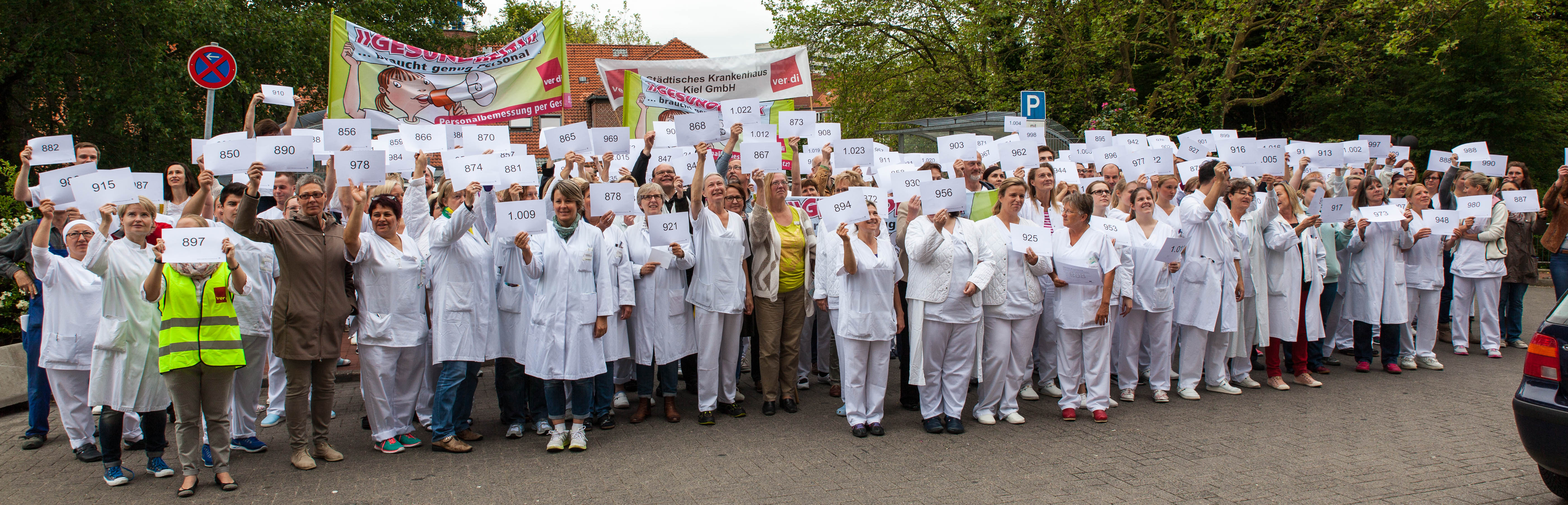 Allein im Städtischen Krankenhaus in Kiel fehlen 199 Mitarbeiter. Die Kolleginnen und Kollegen bei der Aktion für mehr Personal an den Kliniken in Kiel