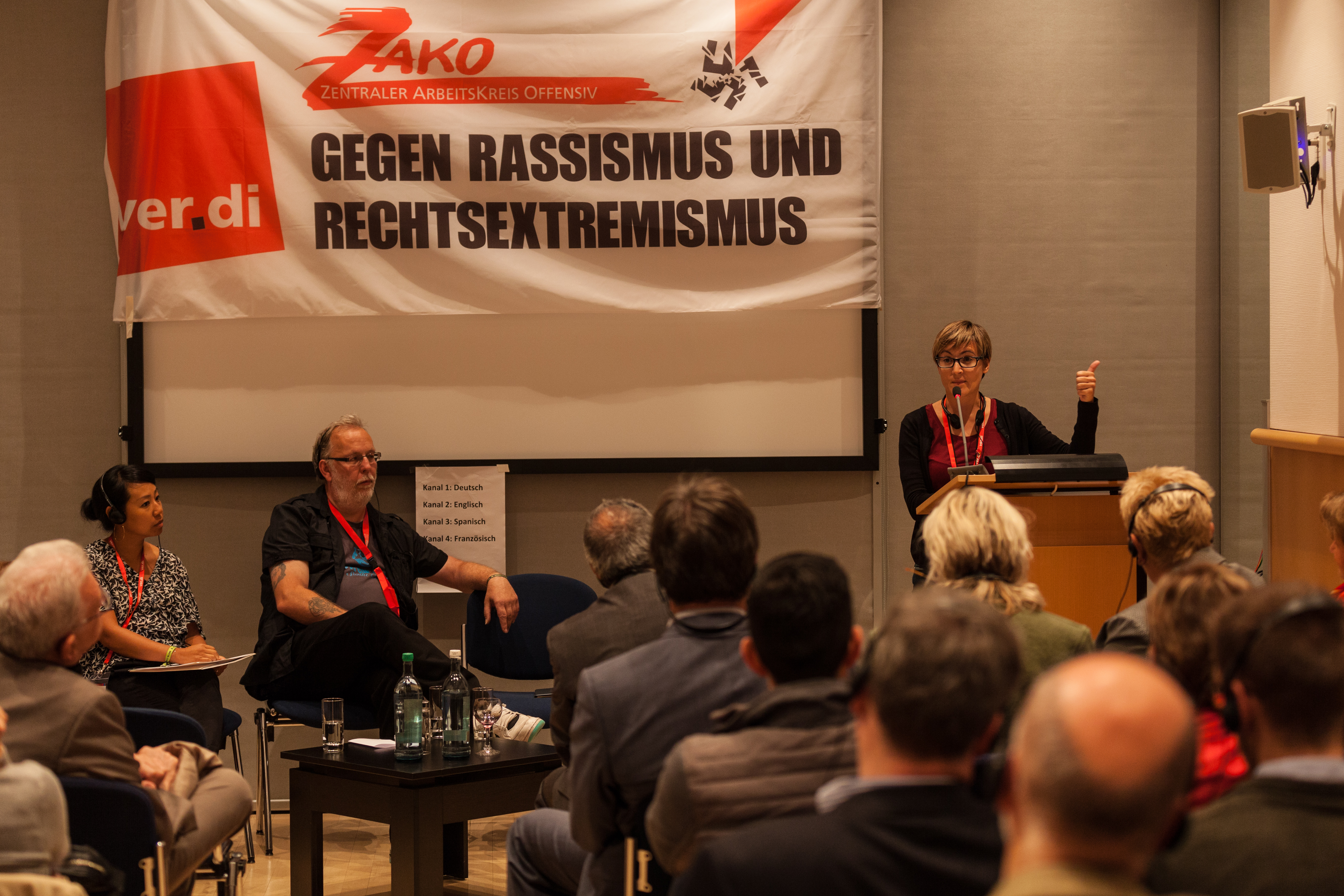 Veranstaltung ZAKO mit internationalen Gästen, Hae-Lin Choi (CWA, USA), Fatima Aguado (FSC-CC.OO, Spanien)