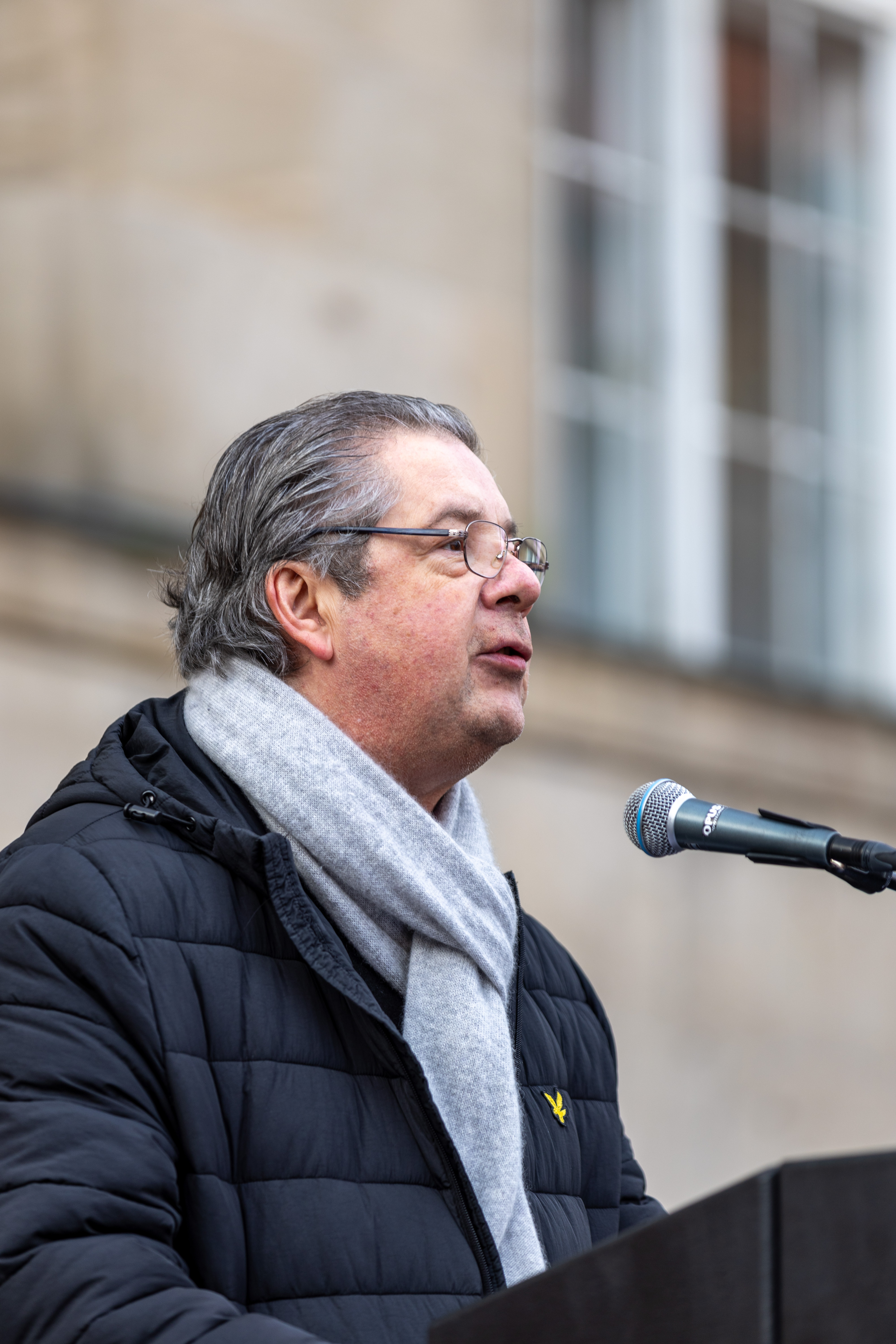 Kundgebung des DGB für Demokratie und Solidarität in Kiel auf den Rathausplatz, Daniel Karasek, Generalintendant des Theaters Kiel
