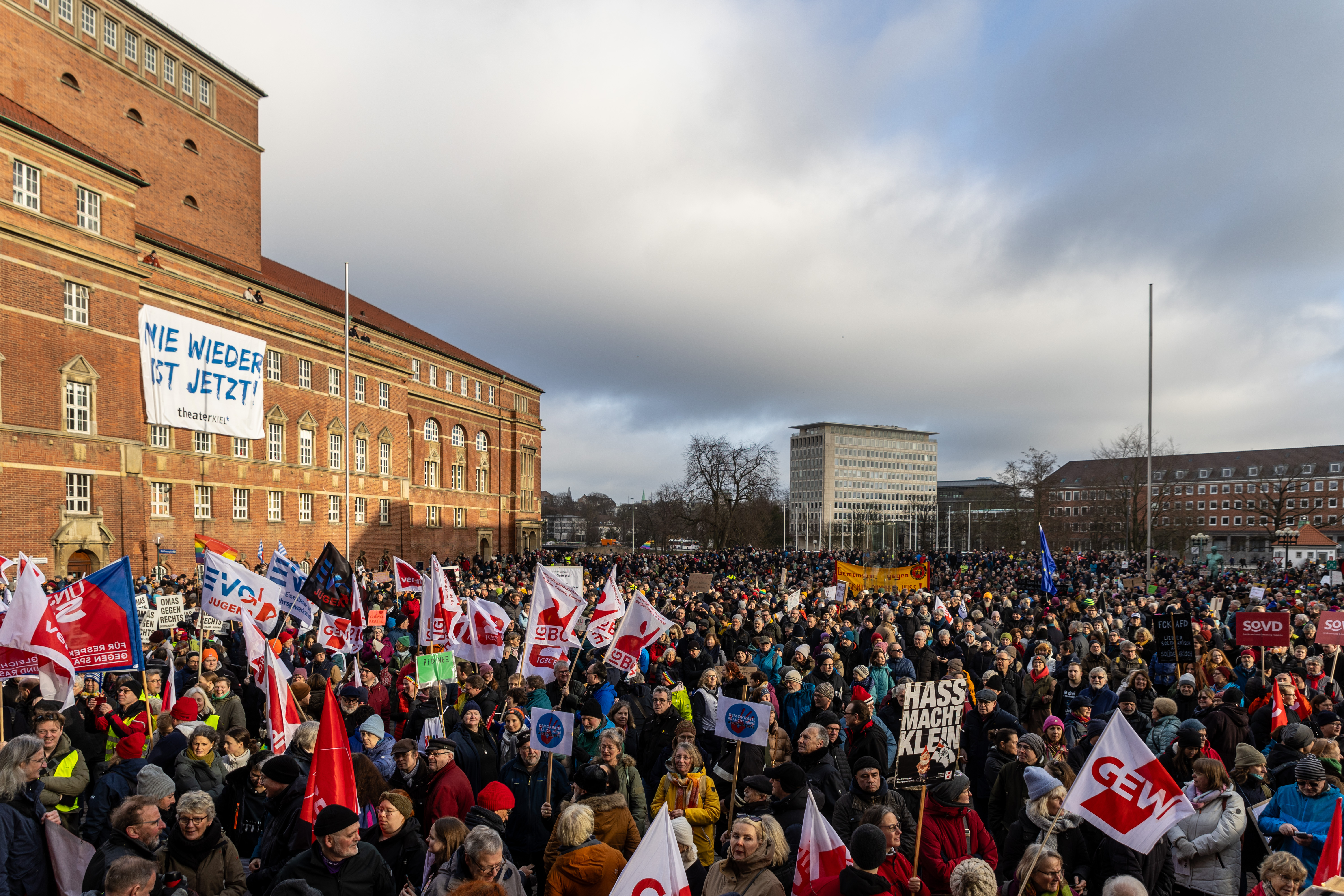 Kundgebung des DGB für Demokratie und Solidarität in Kiel auf den Rathausplatz