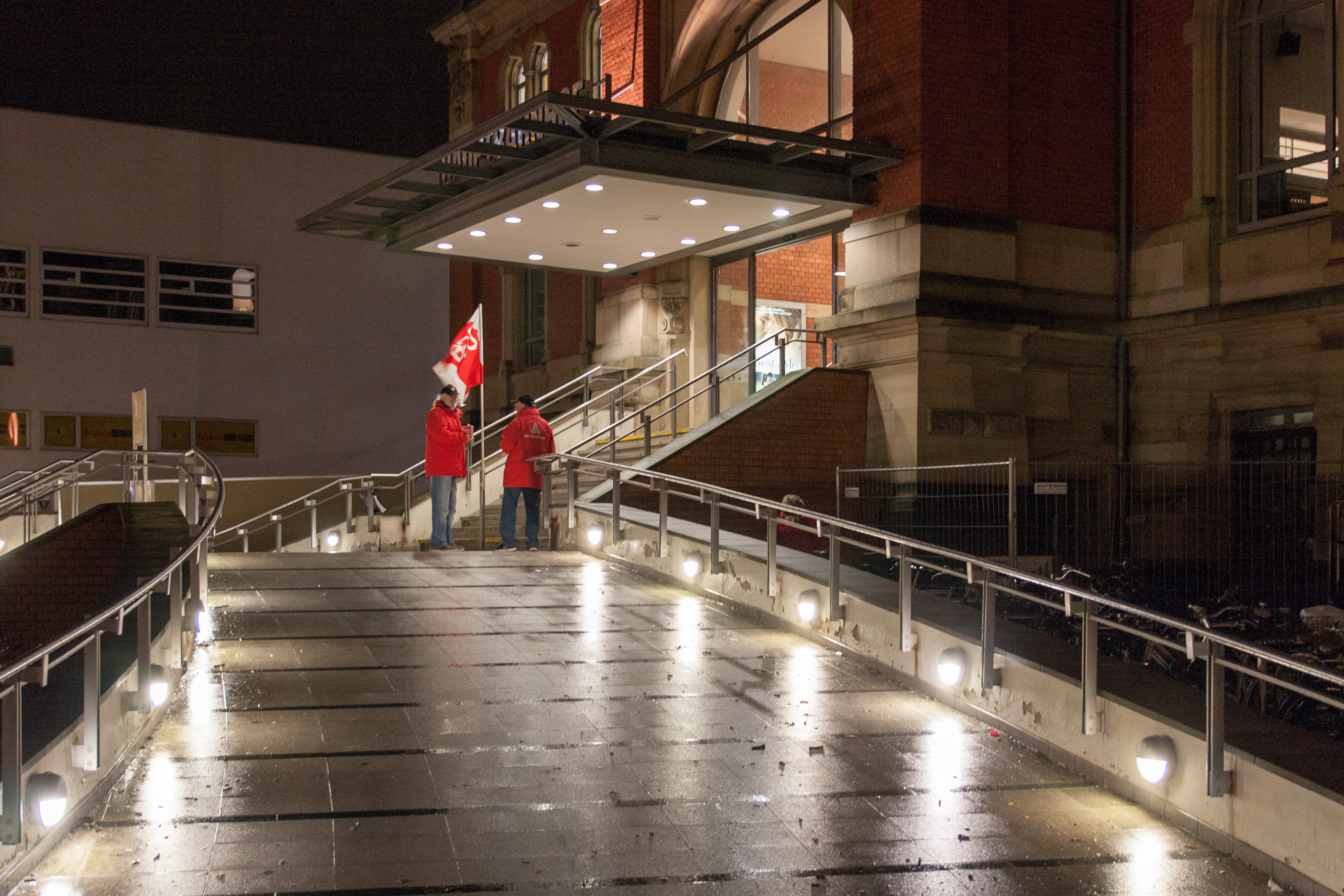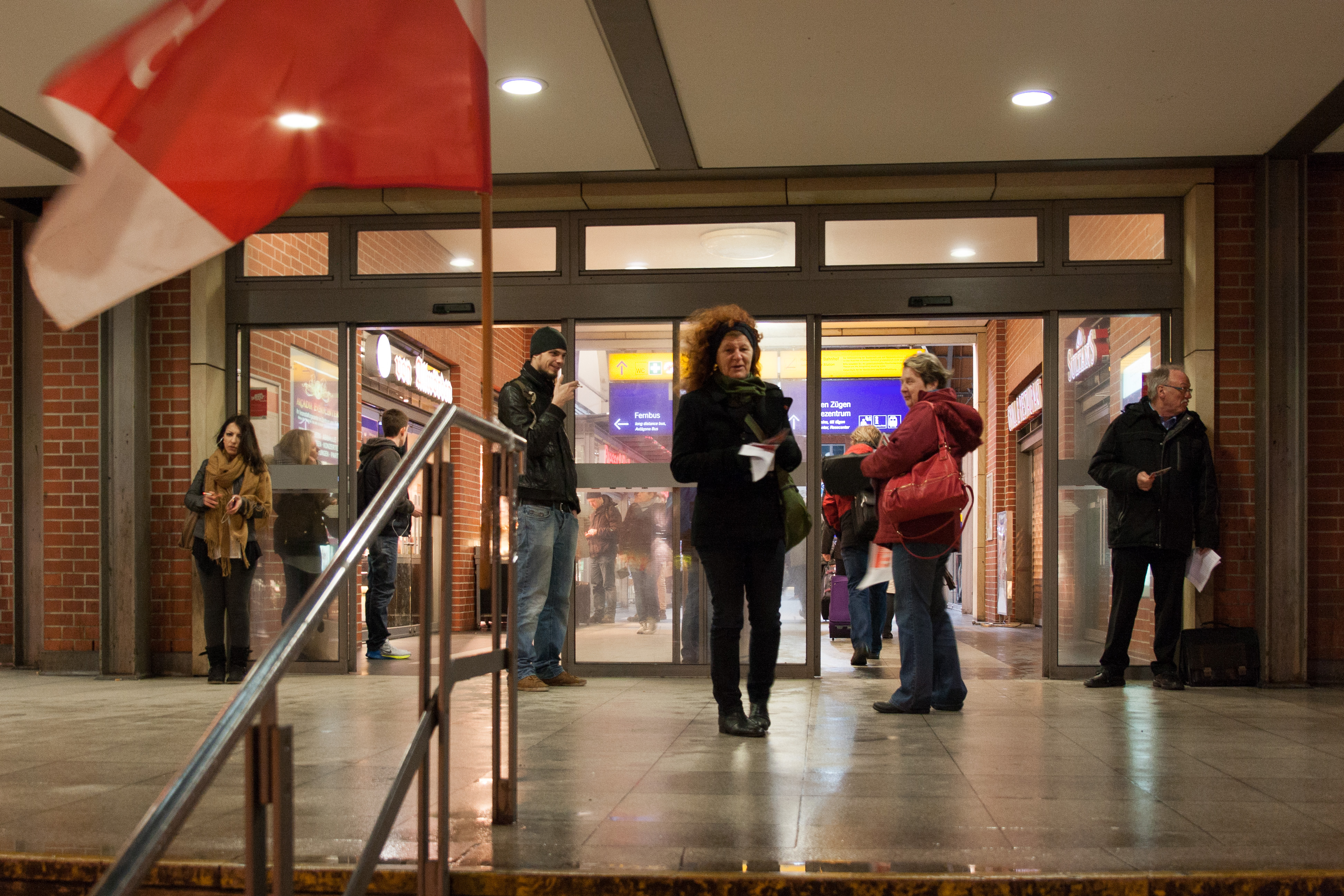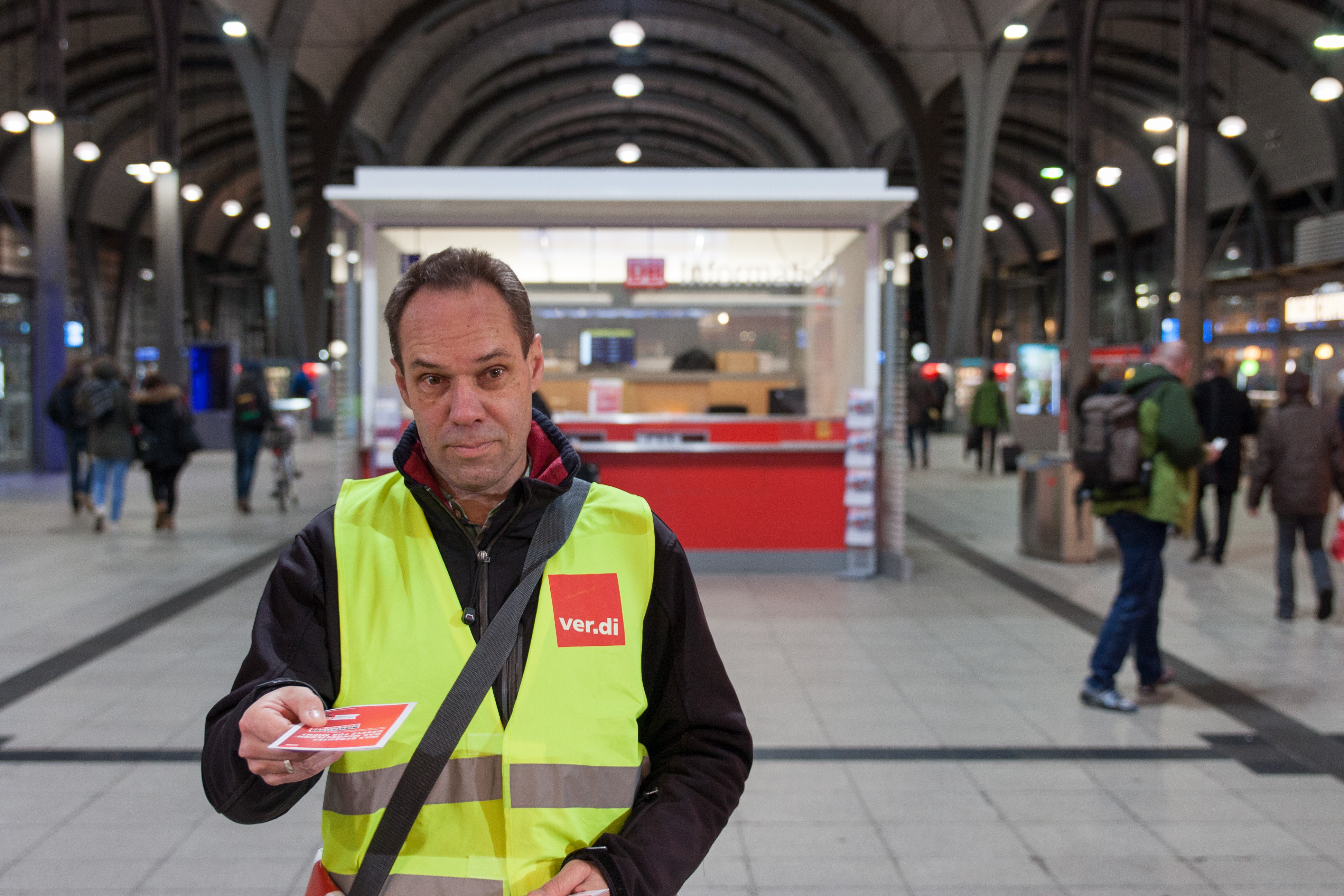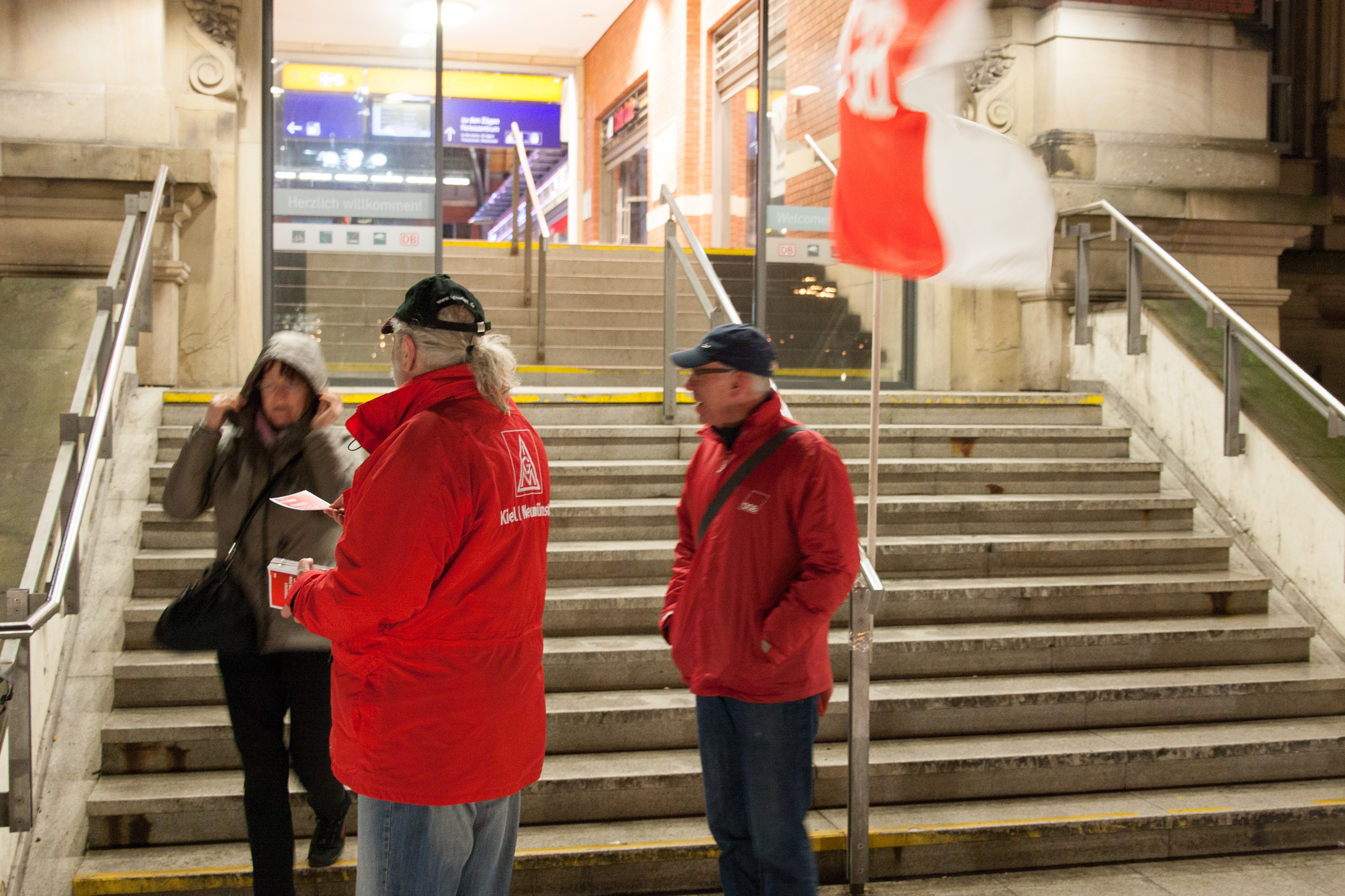 Mindestlohnaktion des DGB im Kieler Bahnhof