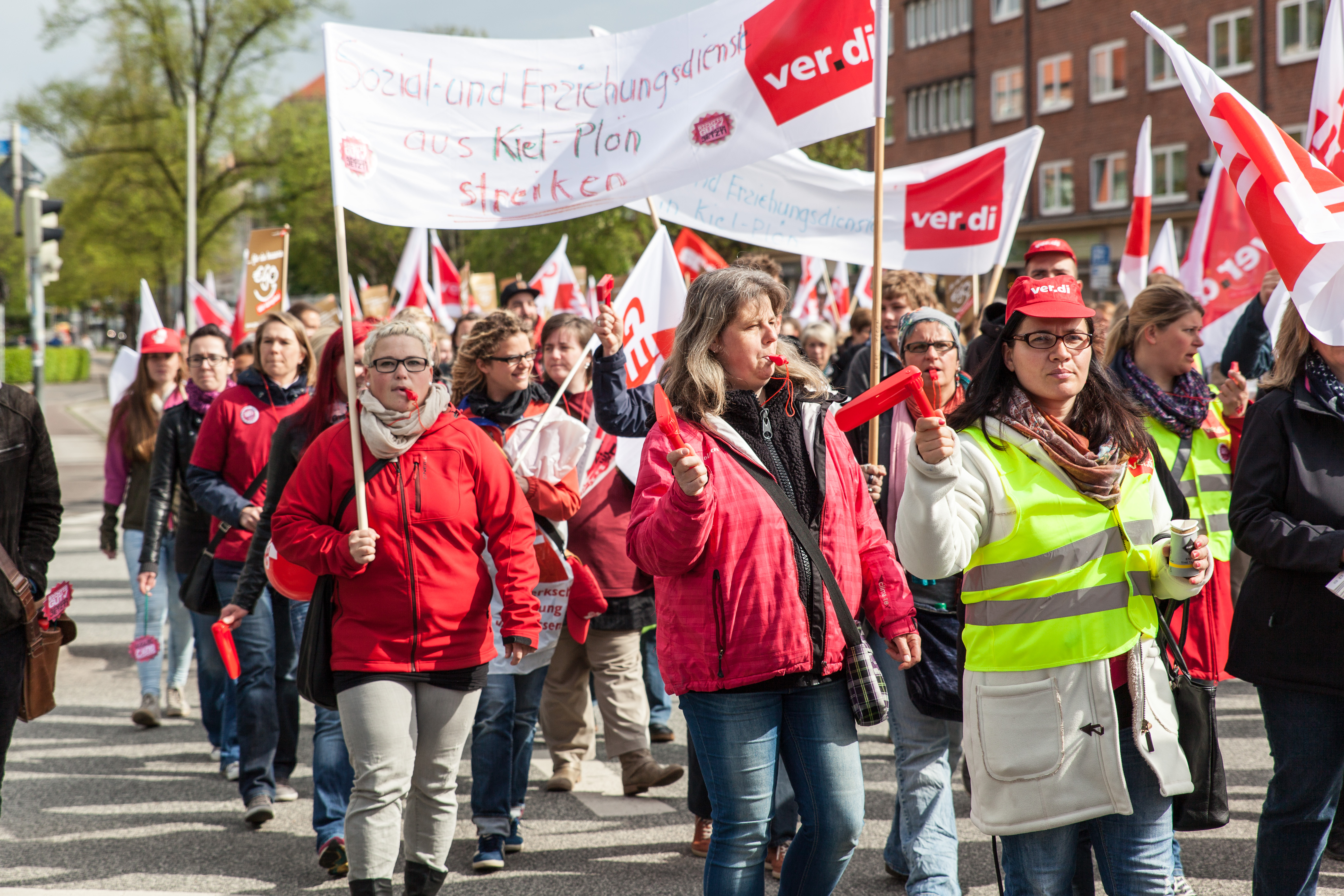 Share Content Published May 8, 2015 Streik der Sozial- und Erziehungsdienste in Kiel demo gew kiel kita sozial und erziehungsdienste streik ver.di