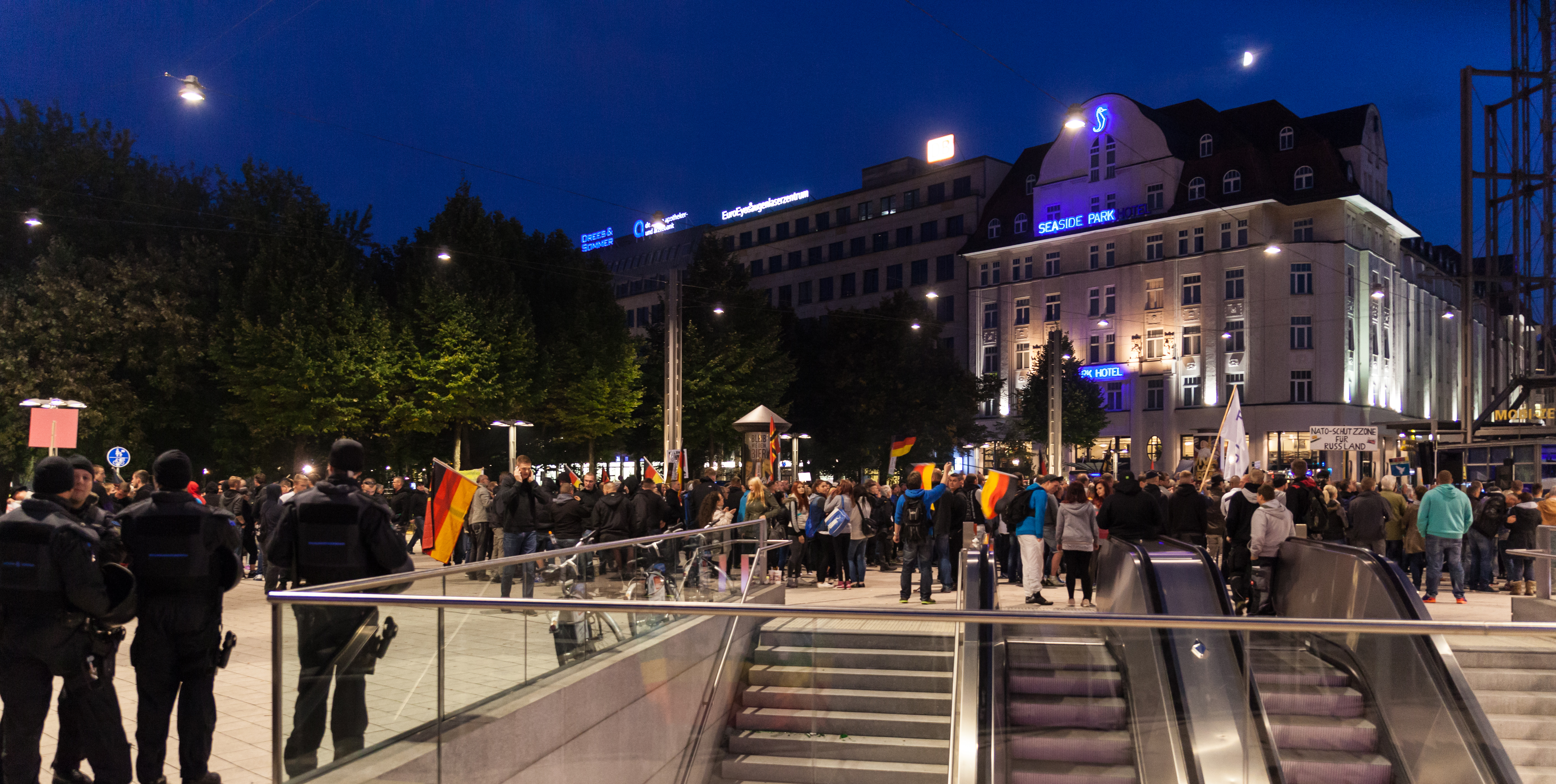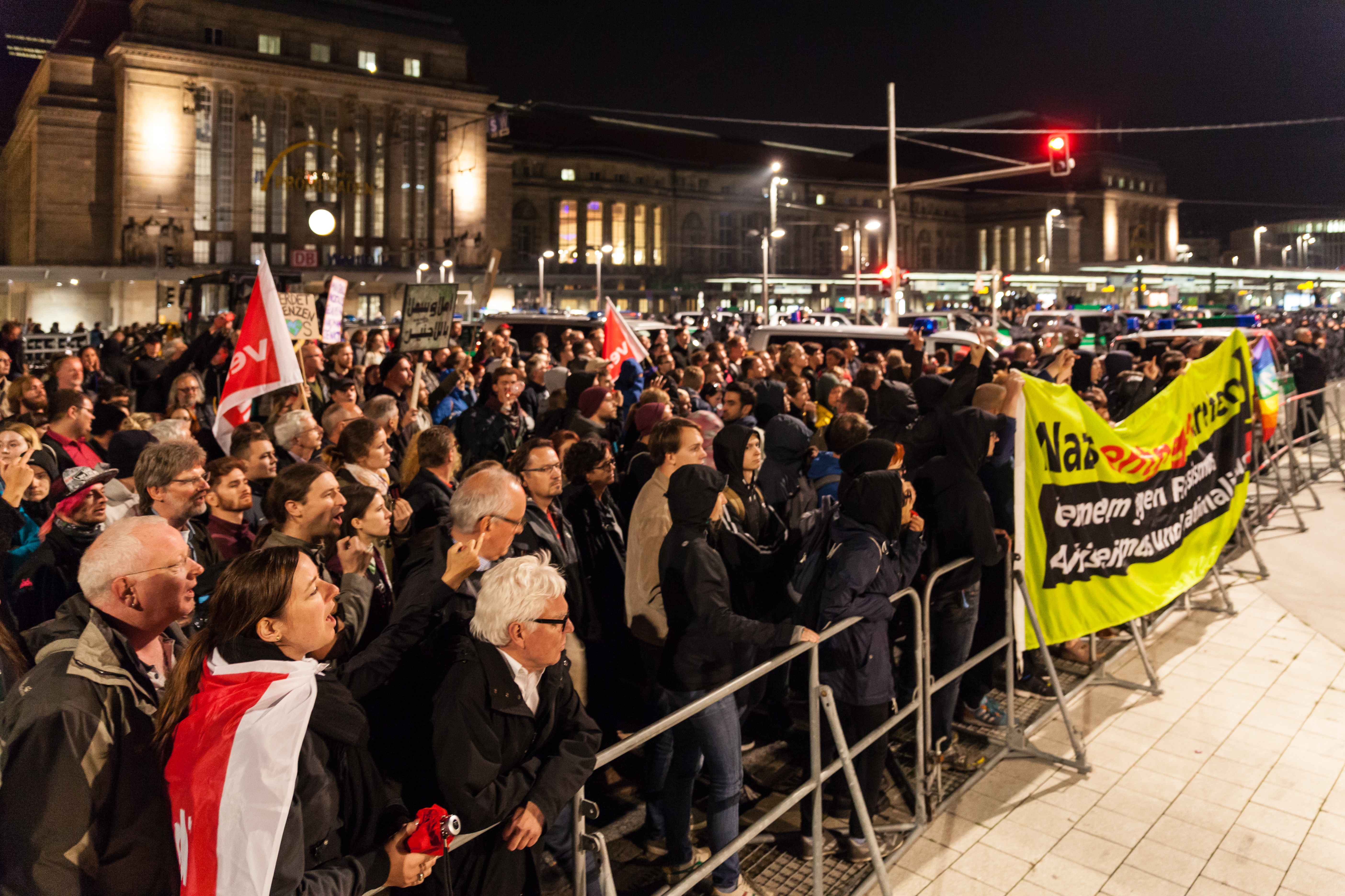 Gegendemonstration vor dem Bahnhof in Leipzig